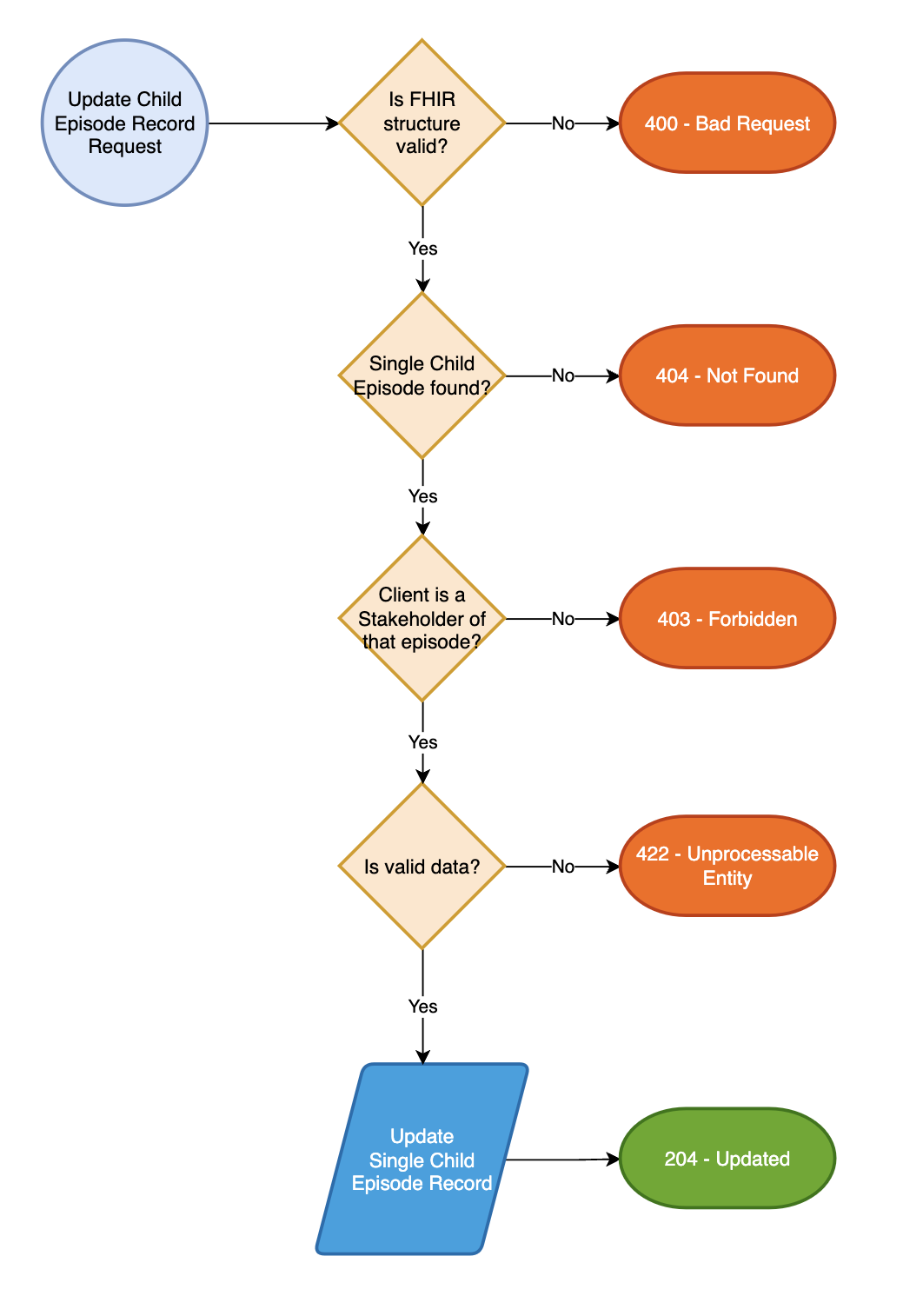 If the child episode record is updated successfully, a response with status code 204 -- No Content is returned.
